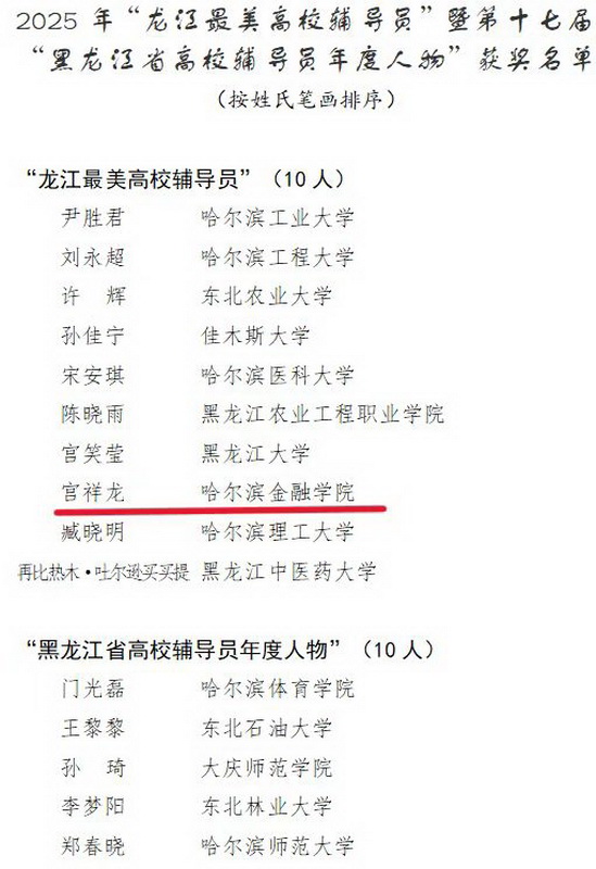 喜报!我校辅导员宫祥龙荣获2025年“龙江最美高校辅导员”称号