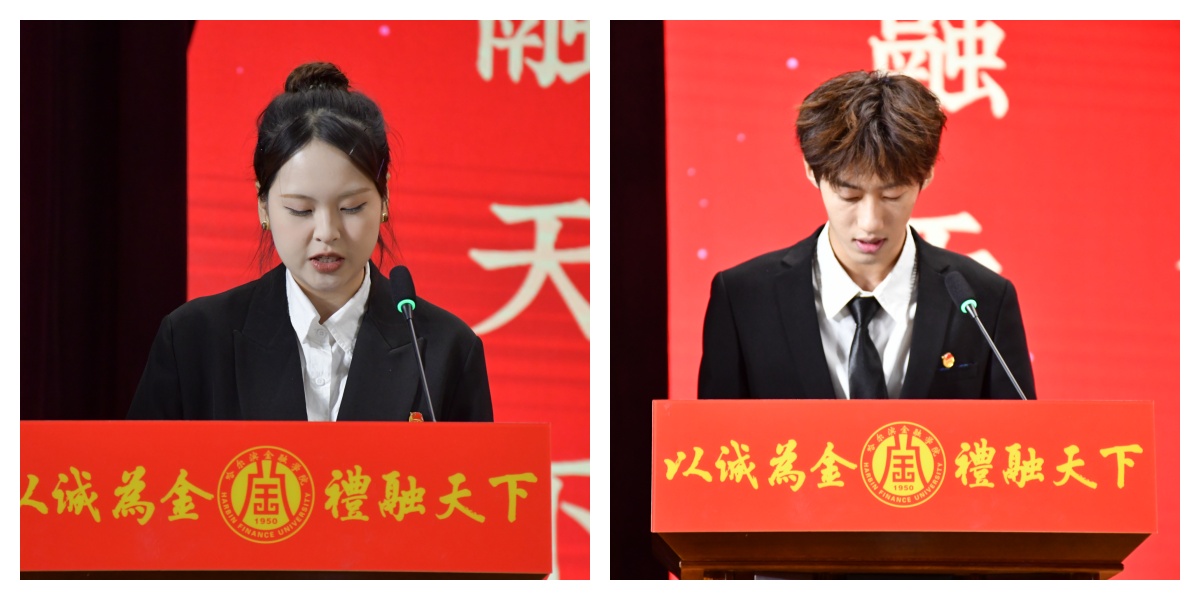 第十一期优秀学员代表苑晓曼分享了在培训期间的收获与成长,表达了对学校培养的感激之情。第十二期新学员代表贾明玉代表全体学员郑重承诺,将珍惜学习机会,严守纪律、潜心学习、积极进取,努力成长为坚定的青年马克思主义者。