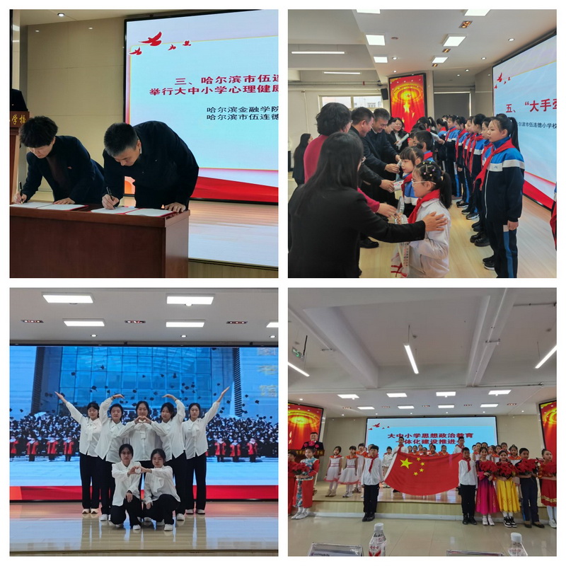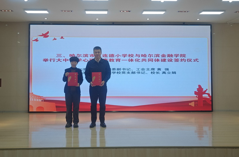 12月3日上午,我校与哈尔滨市伍连德小学举行大中小学思想政治教育一体化推进会暨心理健康教育一体化建设签约仪式。我校党委副书记、工会主席黄强,道外区教育局宣传部负责人刘霞,伍连德小学党支部书记、校长高立娟及两校师生代表参加活动。