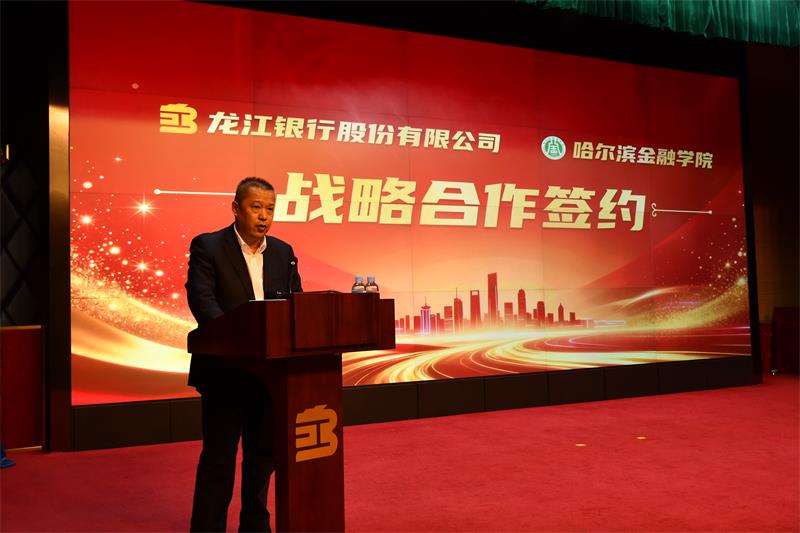 杨弘宇在致辞中表示,与龙江银行签订战略合作协议,是双方响应教育强国建设号召、服务龙江全面振兴全方位振兴的重要举措,更是金融教育与金融实践深度融合、协同育人的生动实践。杨弘宇指出,龙江银行作为扎根龙江、辐射全国的地方法人银行,在支持实体经济、普惠金融、绿色金融等领域成效卓著,以先进的经营理念、丰富的金融资源和创新的服务模式,成为地方银行业的模范代表,深入合作是双方优势互补、协同发展的战略抉择。杨弘宇强调,希望通过战略合作,能在人才培养上出实招,在协同创新上求突破,在服务发展上见实效,在党建共建上创品牌。紧扣龙江经济社会发展需求,实现银校双赢、共同发展。