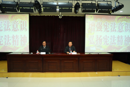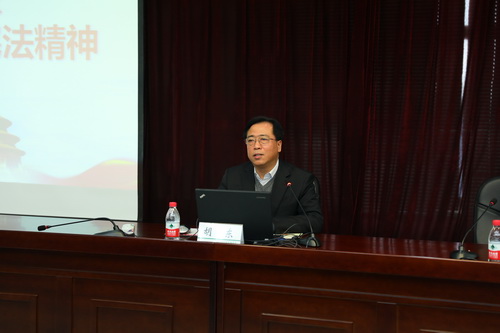 胡东教授以《增强宪法意识 弘扬宪法精神》为题,紧紧围绕宪法修正案的内容,就宪法是国家根本法、宪法是治国安邦的总章程、宪法是党和人民意志的集中体现、宪法的完善与发展、宪法的实施与保障五个方面进行了详细解读,并就宪法特征等相关理论和核心内容做了深入阐释。胡东教授的报告清晰、凝练,为大家系统的学、深入的学,清晰的领会宪法修正案的内容提供了引领。