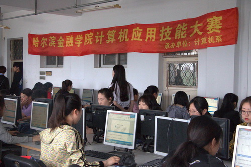 为提高我院大学生计算机应用技能水平,锻炼实践操作能力,根据《哈尔滨金融学院第九届校园科技文化艺术节活动方案》的安排,由院团委主办、计算机系承办的第九届科技文化艺术节计算机应用技能大赛和汉字录入技能大赛于5月16日在实验楼9个机房同时开赛。副院长徐春香、副院长张铁军、计算机系党总支书记陈丽彤、计算机系主任齐景嘉、教务处副处长段洪成、院团委副书记顾广强到比赛现场观摩并指导比赛。