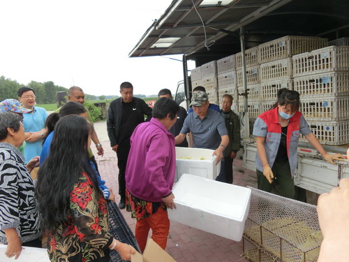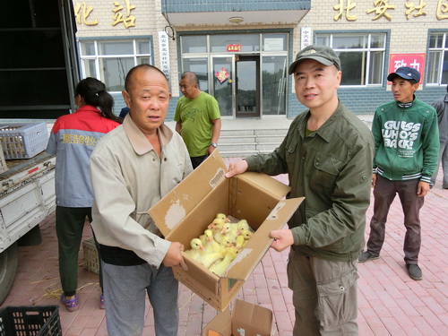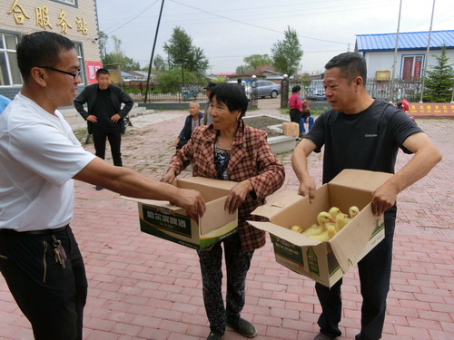 为了进一步落实我院2018年定点驻村帮扶兰西县北安乡北安村工作计划,扩大北安村贫困户家禽养殖业,增加贫困群众收入,6月10日,学院工会主席王忠国带队,宣传统战部部长潘军、工会副处长张宝利一同来到北安村,为建档立卡贫困户免费发放鹅雏。