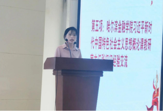 我校马克思主义学院习近平新时代中国特色社会主义思想概论课教研室主任张闪闪围绕习近平总书记在新时代推动东北全面振兴座谈会和视察黑龙江省重要讲话重要指示精神如何更好地融入习近平新时代中国特色社会主义思想概论课进行了经验交流。