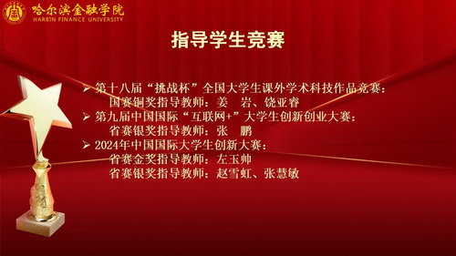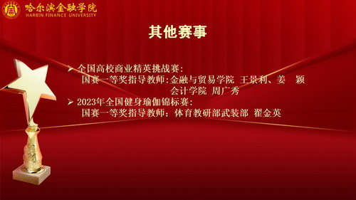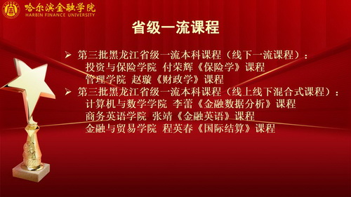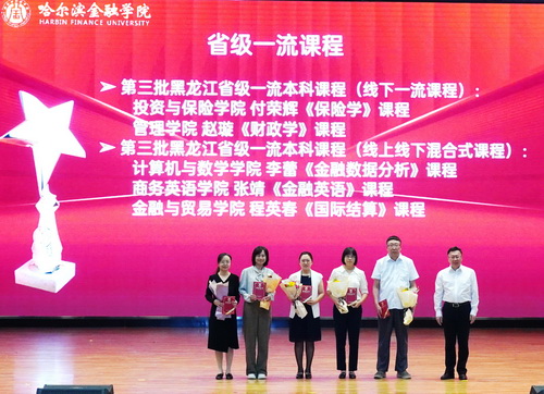 党委副书记、校长张林为2023-2024年省级一流课程颁奖;党委副书记刘景顺为2023-2024年省级课程思政奖项颁奖;党委委员、副校长李金贵为2023-2024年省级教学竞赛类获奖颁奖;党委委员、纪委书记孙宝民为2023-2024年省级科研成果奖项颁奖;党委委员、副校长黄强为2023-2024年省级、校级师德先进集体(个人)颁奖。
