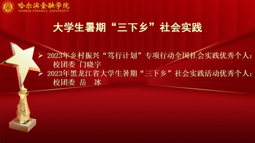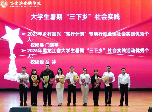 张林为2023-2024年在“三下乡”社会实践活动中荣获国家级、省级奖项的单位、个人颁奖;刘景顺为2023-2024年在指导大学生参与各项学科类竞赛中取得佳绩,做出突出贡献的指导教师颁奖;李金贵、孙宝民、黄强为2023-2024年在志愿服务、大学生思政工作、体育竞赛等学校各条战线上奋勇争先,为学校争得荣誉的先优模范代表颁奖。