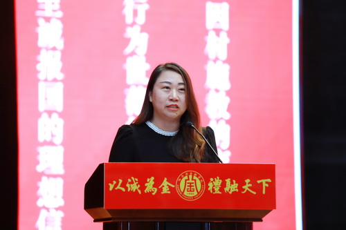 金融与贸易学院苗闫作为教师代表发言。她分享了自己二十余年职业成长路上的教育理念“教育不是灌输,而是点燃心中的火焰,教育不仅是知识的讲授,更是心灵的启迪,人格的感染、价值的传承。”并深情寄语全体教师“铭记教育家精神,满怀爱国之心共绘我国金融教育华章,满怀爱校之情共铸金院未来辉煌。”