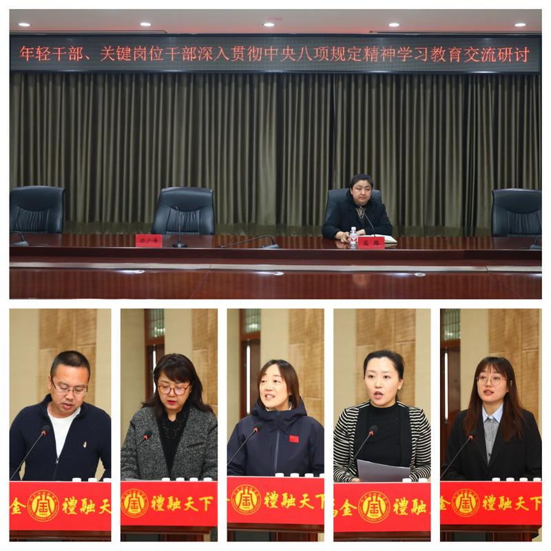 为深入贯彻中央八项规定精神,加强年轻干部队伍建设,提升年轻干部、关键岗位干部政治素质和政治能力,5月8日上午,我校举办年轻干部、关键岗位干部深入贯彻中央八项规定精神学习教育交流研讨会。学校年轻干部、关键岗位干部共50余人参加了本次交流研讨。
