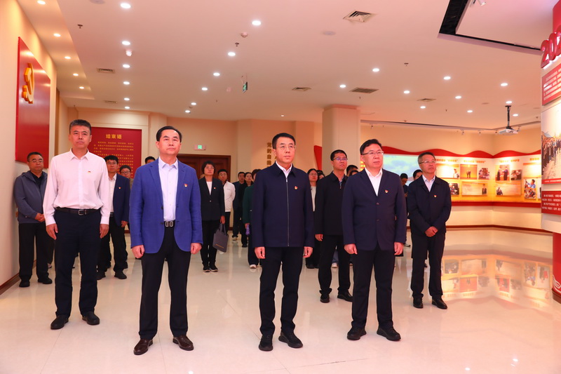 参观最后,全体党员干部面对党旗,重温入党誓词,追忆入党初心,坚定对党和人民做出的庄严政治承诺。