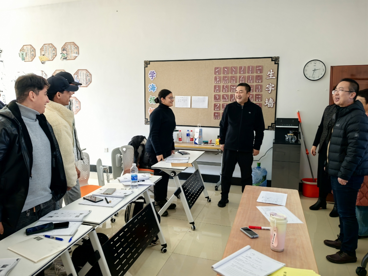随后,刘任重走进留学生课堂,与同学们亲切交流,仔细询问他们在校学习生活是否适应、是否存在困难、饮食是否习惯等具体问题。他强调,留学生是学校大家庭中不可或缺的重要成员,是校园文化多样性的生动体现。学校始终高度重视留学生的教育培养与服务保障工作,致力于为大家营造一个既安全温馨、又包容进取的成长环境,希望同学们在我校度过充实而愉快的求学时光,实现个人成长与学业进步。