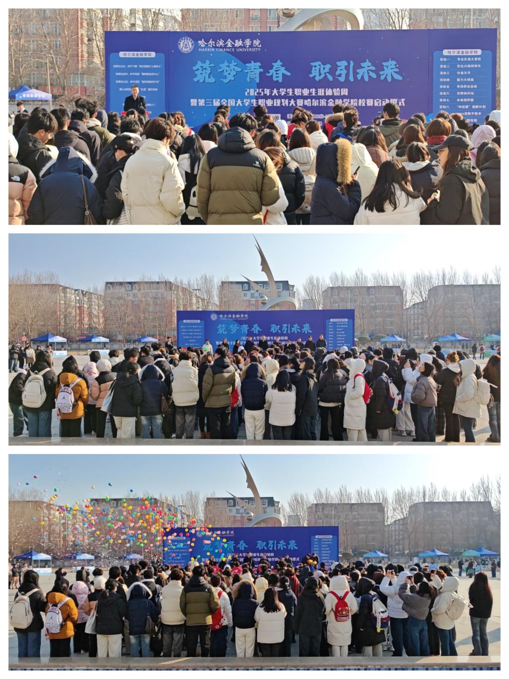 学校党委副书记、工会主席黄强出席开幕式并致辞,招生就业处、校团委及各二级学院负责人共同参加。黄强指出,哈尔滨金融学院始终秉持“以生为本”的育人理念,致力于促进学生全面成长。职业生涯体验周是学校深化就业育人、推进“三全育人”改革的重要举措。学校坚持“以赛促学、以赛促教、以赛促就”,引导学生树立科学的成才观、就业观与择业观,鼓励大家在沉浸式体验中探索自我、展望未来。