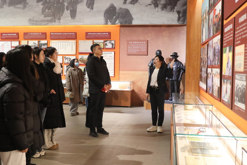 讲解员结合展品,生动讲述了复转官兵、知识青年、科技人员等在极端艰苦条件下战天斗地、开拓荒野的奋斗事迹。师生认真聆听、驻足交流,在触摸历史中接受思想洗礼。马克思主义学院教师现场开展教学,将思政理论与历史现实有机结合,引导学生从北大荒的沧桑巨变中感悟党的领导、国家发展与个人成长的紧密联系,深化对“自力更生、艰苦创业、勇于开拓、甘于奉献”的北大荒精神的理解与认同。