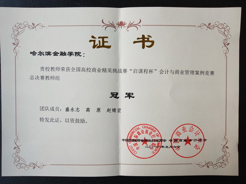 5月5日至6日,第五届两岸四地大学生会计与商业管理案例竞赛“启课程杯”大陆地区总决赛在哈尔滨商业大学成功举办。会计系派出的教师代表队获大赛教师组冠军,三支学生代表队均荣获二等奖,我院获最佳院校组织奖。