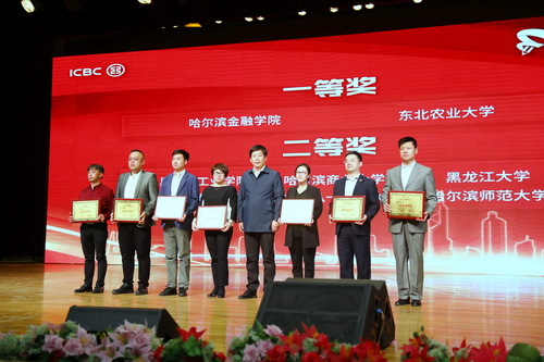 在本次典礼上,我院领导与团省委、黑龙江省工商银行、其他高校领导,为获得大赛优异成绩的高校师生颁发了奖状和奖金。省工商银行张晓辛行长发表了热情洋溢的讲话,他充分肯定和赞扬了参赛大学生富有创新精神的智慧才华、积极进取朝气蓬勃的精神面貌和我省高校教学科研的高水平,指出参赛师生为我省高校赢得了荣誉、为黑龙江创新发展做出了贡献。张晓辛行长表示,黑龙江工商银行将继续履行好社会责任,在有关部门的支持指导下,与省内高校继续共同办好大赛,推进银校合作。