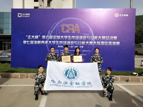 5月26日,由教育部高等学校统计学类专业教学指导委员会与中国商业统计学会共同主办的2018年第八届全国大学生市场调查与分析大赛决赛在山东财经大学举行。我院由管理系张磊指导,管理系学生王彩丽、李淼、王滢、孙毓含和金融系学生周德山五位同学完成的《亮剑小勇士——哈尔滨市军事训练营消费者态度调查》项目获全国一等奖。
