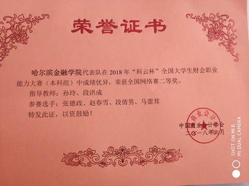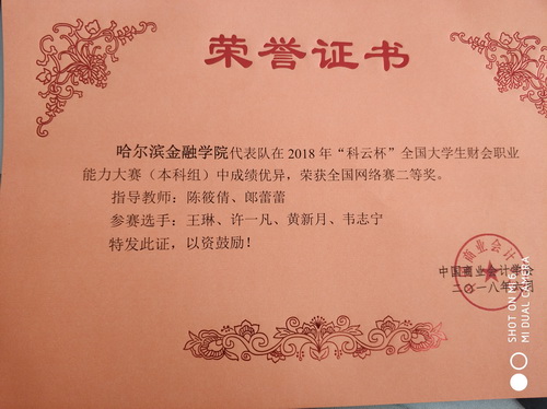 我院学生参加2018年“科云杯”全国大学生财会职业能力大赛(本科组)全国网络赛获佳绩