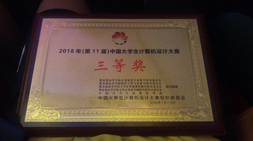 第十一届中国大学生计算机设计大赛总决赛于暑假举行,我院代表队参加了三个组别的比赛,分别获得三个国家三等奖。