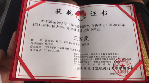 本届比赛由教育部高等学校计算机类专业教学指导委员会、教育部高等学校软件工程专业教学指导委员会、教育部高等学校大学计算机课程教学指导委员会、教育部高等学校文科计算机基础教学指导分委员会联合主办,由安徽铜陵学院、南京邮电大学和上海东华大学承办。总决赛共有来自全国高校400余支队伍参赛,参与师生多达1000余人。决赛分为三个组别进行,其中“数字媒体设计类”组别全国总决赛于7月17日至21日在安徽铜陵学院举行,“1911年前中华优秀传统文化元素”组别全国总决赛于8月1日至5日在南京邮电大学举行,“软件应用与开发”组别全国总决赛于8月16至19日在上海东华大学举行。我院计算机系郑秋菊老师指导的代表队凭借作品《流觞曲水 古街技艺》成功入围“1911年前中华优秀传统文化元素”组别决赛,刘明刚老师指导的代表队凭借作品《“帮帮呗”校园取送、代工、金融服务APP》成功入围“软件应用与开发”组别决赛,姜微老师指导的代表队凭借作品《WHO I AM》成功入围“数字媒体设计类”组别决赛。计算机系高度重视此项比赛。在赛前,指导教师带领学生多次实地调研,利用课余时间积极备赛,精心制作作品。在比赛现场,学生发挥出色,问答自如。三个参赛队均获得了国家三等奖的好成绩。