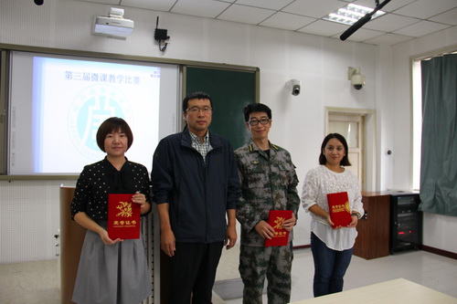 各教学单位按照比赛类别各推荐了十位教师参加评选,经过激烈的角逐和严格的评审,最终,多媒体课件制作大赛由法律系李滨晶、计算机系于洪鹏、管理系高微获得一等奖;会计系渠帅、金融系史宁、商务英语系杨雪芳获得二等奖;思政部林爽、基础部鄂宁、体育部臧帅、投资保险系秦玲玲获得三等奖。微课教学比赛由管理系柳欣、法律系李滨晶、会计系林丽获得一等奖;计算机系李蕾、商务英语系刘磊、思政部兰虹获得二等奖;投资保险系姜睿、基础部赵玉辉、体育部刘迪、金融系李美丹获得三等奖。