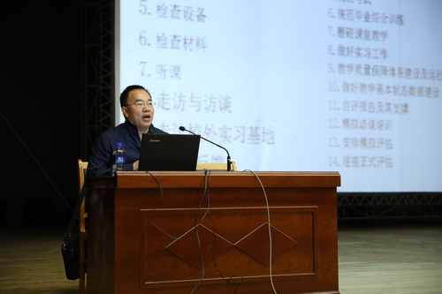 李景芝教授从评估方案、专家组考察方式、学校迎评准备建议等方面,结合多年评估工作经历和具体案例,针对评估工作中可能存在的问题进行了详细解读。李教授以丰富的高校质量评估工作经验、大量详实的教学评估数据和风趣幽默的语言赢得了大家一阵阵掌声。