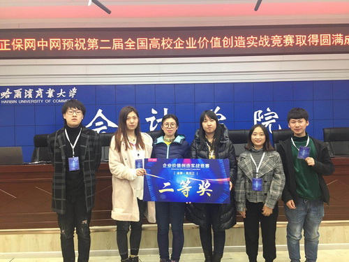 3月24日,由黑龙江省教育厅高教处、黑龙江省普通高等学校创新创业教育指导委员会主办,厦门网中网软件有限公司、沈阳跃客教育科技有限公司协办,哈尔滨商业大学承办的第二届全国高校“企业价值创造实战”竞赛(黑龙江赛区)在哈尔滨商业大学举行。全省共有来自哈尔滨工业大学、东北林业大学、东北农业大学、黑龙江大学、黑龙江科技大学、哈尔滨商业大学等21所院校百余名师生参加比赛。我院管理系王磊和王娜老师指导的,由姬利、杨士琦、侯亚楠、张乐娇同学组成的参赛队伍经过赛前的精心准备和刻苦训练,在赛场上奋力拼搏、并充分发挥了团队精神,最终取得了第二届全国高校“企业价值创造实战”竞赛(黑龙江赛区)二等奖的优异成绩。