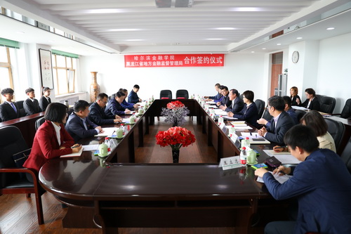 双方签订合作协议并授牌,学院授牌省地方金融监督管理局“哈尔滨金融学院实践教学基地”,省地方金融监督管理局授牌学院“黑龙江省地方金融业务培训基地”。学院将细化务实合作内容,落实落靠落细合作项目,分解务实合作“任务清单”,明晰合作方向,与行业监管部门打好“组合拳”,合作共赢,互利发展,力争成为行业监管部门的智库和人才培训基地。
