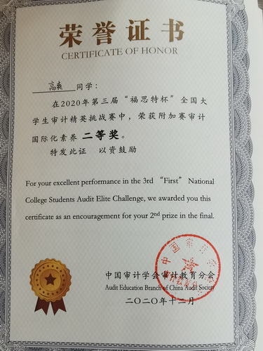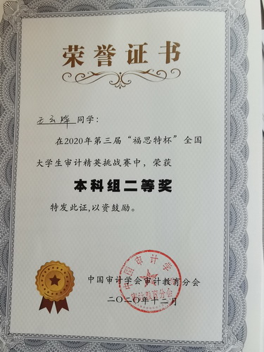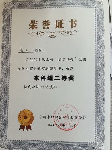 我校学生荣获“福思特杯”全国大学生审计精英挑战赛二等奖