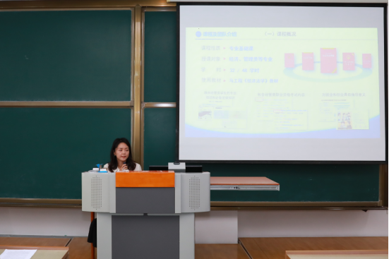 经济法课程思政示范项目负责人李滨晶首先作了经验汇报,她从课程思政示范课程建设路径着手,向大家介绍了构建思政教学体系、优化课程内容,深挖思政元素、积累案例素材,讲好五类故事、创新思政教学方法和提供“精准化”反馈数据五条建设路径,最后提炼出了“反思复盘、推陈出新、持续探索”这一课程思政教学改革的实践反思。