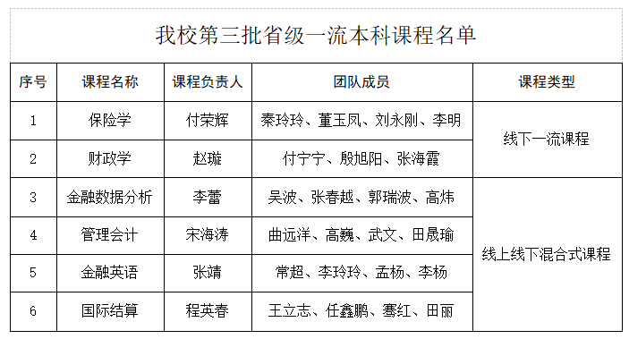 近日,黑龙江省教育厅印发《关于公布第三批省级一流本科课程认定结果的通知》(黑教高函〔2023〕143号)。我校6门课程被认定为省级一流课程,其中,线下课程2门、线上线下混合式课程4门,具体名单如下表。学校高度重视课程建设工作,按照“高阶性、创新性、挑战度”的金课标准,积极推进现代信息技术与教育教学深度融合,引导全校教师全面提升信息化教学水平,全力打造校级、省级、国家级一流本科课程三级建设体系。截止到目前,学校现有国家级一流课程1门、省级一流课程13门、院级一流课程39门,已完成学校专业建设与人才培养“十四五”发展规划中课程建设的既定目标。