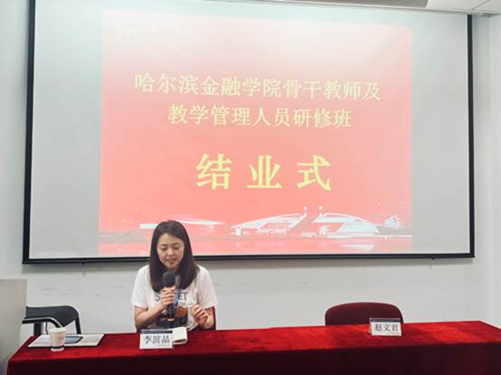 法律系李滨晶老师代表学员做学习总结发言。她表示本次培训给老师的教学工作带来新的理念和思路,开拓了视野,增长见识,提高教师数字化能力,在未来教学中将笃行不怠、奋发图强,成为教师队伍的排头兵。
