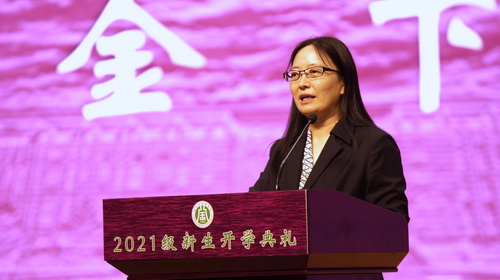 随后,会计系季秀杰教授代表教师致辞,从学会学习、学会规划、学会优秀三个方面寄语全体新同学。