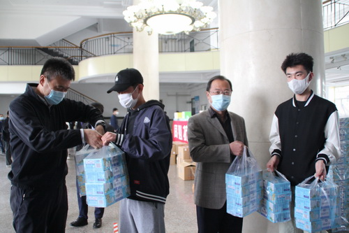 疫情发生以来,学院党委行政果断决策,周密部署,坚决落实省委省政府和教育厅疫情防控各项工作部署,“早快准严细实”落实校园疫情防控各项措施,学院领导、保供、管理、防疫、学生工作等各战线干部教师职工“舍小家顾大家”,与全校学生同吃同住战“疫”在一起,连续多个日夜驻校办公、坚守奋战在防疫一线,协同配合联防联控筑牢校园坚强屏障。党委书记刘小辉、副院长黄强、工会主席王忠国来到位于实验楼的爱心防疫礼包发放现场,亲手为同学们“送温暖”并叮嘱大家遵守疫情防控要求,保持积极乐观的健康心态,快乐学习,健康成长。志愿者认真组织,分工负责,有序分发,以热情的工作态度为金院师生服务。爱心防疫礼包内有酸奶、口罩、消毒湿巾,共发放礼包7957份,其中学生7404份、驻校服务干部教职工77份、劳务派遣和服务外包工人师傅476份。一份暖心的爱心防疫礼包代表着学院党委同全院师生“战”在一起,共抗疫情的决心与信心。同学们和驻校服务的干部职工纷纷表示在校园封闭管理期间,一定会严格遵守学院防疫规定,保持阳光积极的心态,共同打赢疫情防控“校园保卫战”。