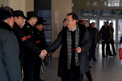 每到一处,学院领导都详细询问员工们的工作、生活安排情况,叮嘱相关部门负责人要安排好节日值班人员生活。刘小辉同志向忙碌着的春节值班工作人员表示衷心感谢和慰问,他希望节日加班的同志们继续发扬爱岗敬业精神,再接再厉,保障在校师生过上一个温暖、和谐、安全的春节假期。一线员工对学院领导的亲切关怀和问候深表感谢,他们表示将尽职尽责,认真完成春节期间的工作任务,为全院师生过上一个温馨祥和、平安快乐的新春佳节做出贡献。