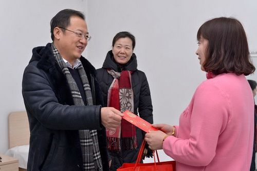 爆竹声中一岁除,春风送暖入屠苏。除夕的金融学院校园一派祥和,2月15日上午,党委书记刘小辉、副院长徐春香、副院长张铁军来到总值班室、新教学楼收发室、第二公寓、锅炉房、北门收发室,看望坚守在工作一线的工作人员,送去节日的慰问和新春的祝福。