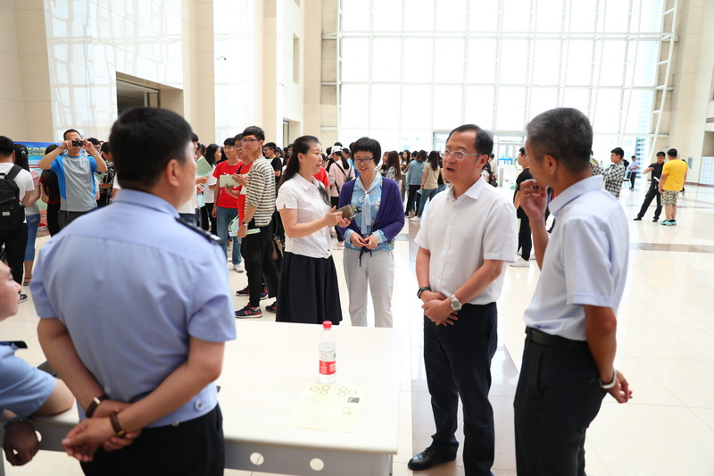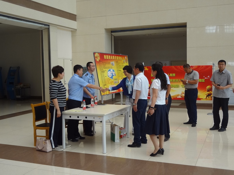 2018年6月15日中午,我院图书馆大厅宣传、咨询活动现场,人潮涌动,气氛热烈。学院党委书记刘小辉,党委副书记、院长于沐琳,党委副书记唐家玮,副院长徐春香,副院长李金贵,副院长张铁军,工会主席王忠国亲临现场参加活动。学院中层领导干部、全体辅导员和部分师生参加了活动。本次活动还邀请到香坊消防大队参谋陆妍、铁东派出所所长程宏权、副所长张楠进行现场咨询。