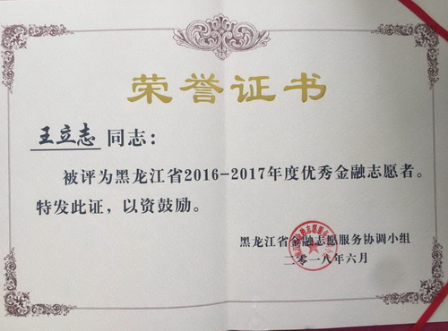 荣誉是激励继续前进的动力。在今后的工作中,金融系金融志愿服务队将会努力提高自身的工作技能和服务水平,继续深入开展金融志愿服务活动,创建龙江金融志愿服务品牌,为推动全省金融志愿服务工作深入发展做出新的更大贡献。
