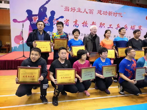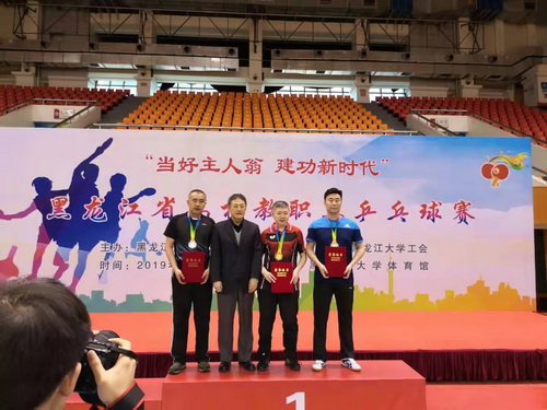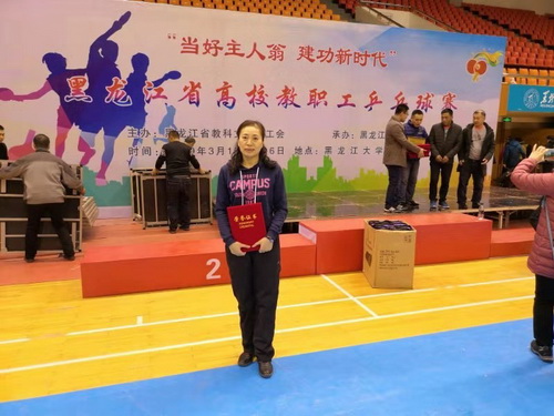 在刚刚结束的黑龙江省教科文卫体工会组织的“当好主人翁、建功新时代”黑龙江省高校乒乓球比赛上,我院参赛队员团结协作,奋力拼搏,取得优异成绩。王小龙获得男子中年组单打亚军,陈丽彤获得女子中年组单打并列第四名,同时我院获得本次比赛的优秀组织奖。