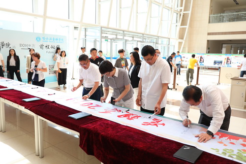 学院领导分别为2019届毕业生代表颁发毕业证书,为2019届学院优秀毕业生颁发荣誉证书。全体院领导为2019届毕业生拨苏正冠,为在金院努力奋斗、学有所成的学子们“加冕”,赋予他们告别学生时代的勇气,帮助他们感知信念、意义和自身的力量,迈向人生的下一个征途。