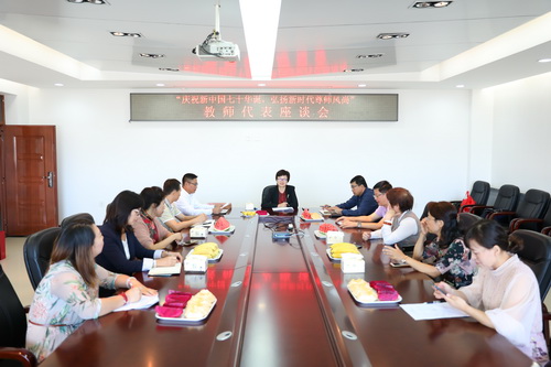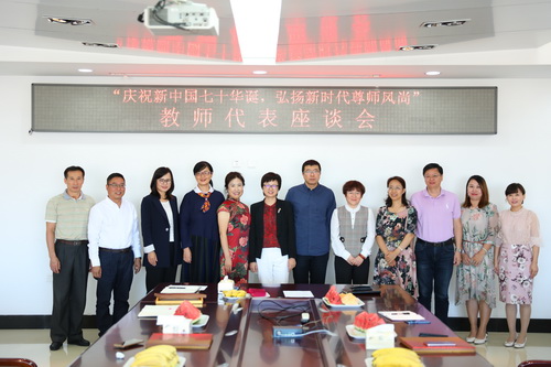 在新中国七十华诞来临之际,时值第35个教师节,为了弘扬优秀教师和从教三十年教师爱岗敬业,无私奉献的崇高精神,感谢他们献身教育事业,为学院发展做出的努力和贡献,9月10日上午,学院在综合楼537会议室组织召开了“庆祝新中国七十华诞,弘扬新时代尊师风尚”为主题的教师代表座谈会。院长于沐琳,副院长张铁军出席会议。相关部门负责人,省级优秀教师、师德先进个人、模范教师获得者及全院三十年以上教龄教师代表参加了座谈会。会议由院工会主席王忠国主持。
