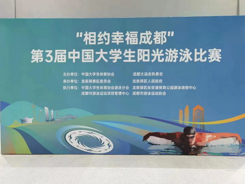 6月15日至19日,“相约幸福成都”第3届中国大学生阳光游泳比赛在四川省成都市东安湖体育公园游泳中心成功举办。我校首次选派了6名队员参加了此次全国赛事。在历时三天的激烈争夺中我校共获得一项亚军、一项第四、两项第五的好成绩。会计系学生钱程在男子200米蛙泳角逐中力克强手勇夺亚军,取得我院参加全国体育赛事的首块奖牌。会计系学生张子昕获得第四名;计算机系学生庞加在女子100米蝶泳、200米蝶泳项目中获得第五名。