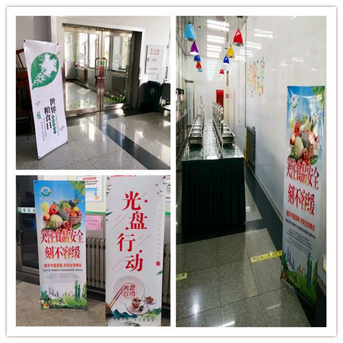 宣传节约粮食,倡导光盘行动。饮食服务中心通过悬挂条幅、张贴海报等方式,对校园食品安全、世界粮食日和全国粮食安全宣传周进行宣传,发出珍惜粮食、从我做起的倡议,倡导师生厉行节约、反对浪费,弘扬中华传统美德,开展光盘行动,给就餐光盘的学生奖励矿泉水。