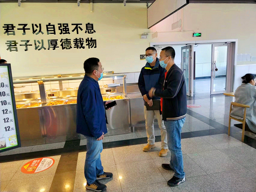 “食品安全月”期间,学院相关领导在后勤管理处有关负责同志的陪同下,深入各食堂一线检查指导工作,对住校食堂员工进行了慰问。学院领导指出,各食堂管理人员要强化责任意识和风险意识,切实将各项工作做实做细,做在前、做到位,以实际行动践行初心使命、彰显金院精神本色,共同筑牢疫情防控铜墙铁壁。同时,学院领导深入住校员工驻地进行实地考察,对住校员工克服困难坚守岗位、不计得失辛勤工作表示慰问和感谢。在活动总结验收阶段,饮食服务中心会同学生食堂学生监督管理委员会成员对各食堂再次进行了检查,积极听取了学生代表们的意见、建议,研究了解决问题的新方法、新举措,建立健全了科学监管长效机制。