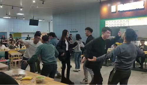 本次活动以学生才艺展示、趣味活动以及民族舞蹈欢跳三部分组成。“身在哈金院求学,每逢佳节倍思亲,家永远是学子们心中思念的地方,我们今日欢聚在这里,让民族团结之花绽放,让快乐响彻云霄。”2022级学生安泽尔和许祺悦两位同学的主持发言拉开了活动的序幕。活动开场,许祺悦为大家展示了一段街舞表演,点燃了现场气氛,收获阵阵掌声。