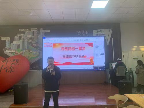 为进一步推进民族团结进步教育,引导青年铸牢中华民族共同体意识,丰富青年课余文化生活。近日,学校在一食堂二楼举办“民族团结一家亲,喜迎佳节联谊会”民族团结教育主题活动,少数民族专职辅导员阿不拉江、巴哈地力以及新疆派驻教师杨丽娟参加活动。