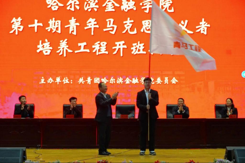 在庄严的国歌声中,“青马工程”培训班开班典礼正式拉开序幕。党委书记刘小辉为“青马工程”第十期培训班授旗。刘小辉、王忠国为“青马工程”青年导师颁发聘书。学生工作部部长、学生处处长金占军,马克思主义学院院长林爽,校团委书记门晓宇为第九期培训班学员颁发结业证书。团委副书记岳冰宣读了第十期“青马工程”培养方案。