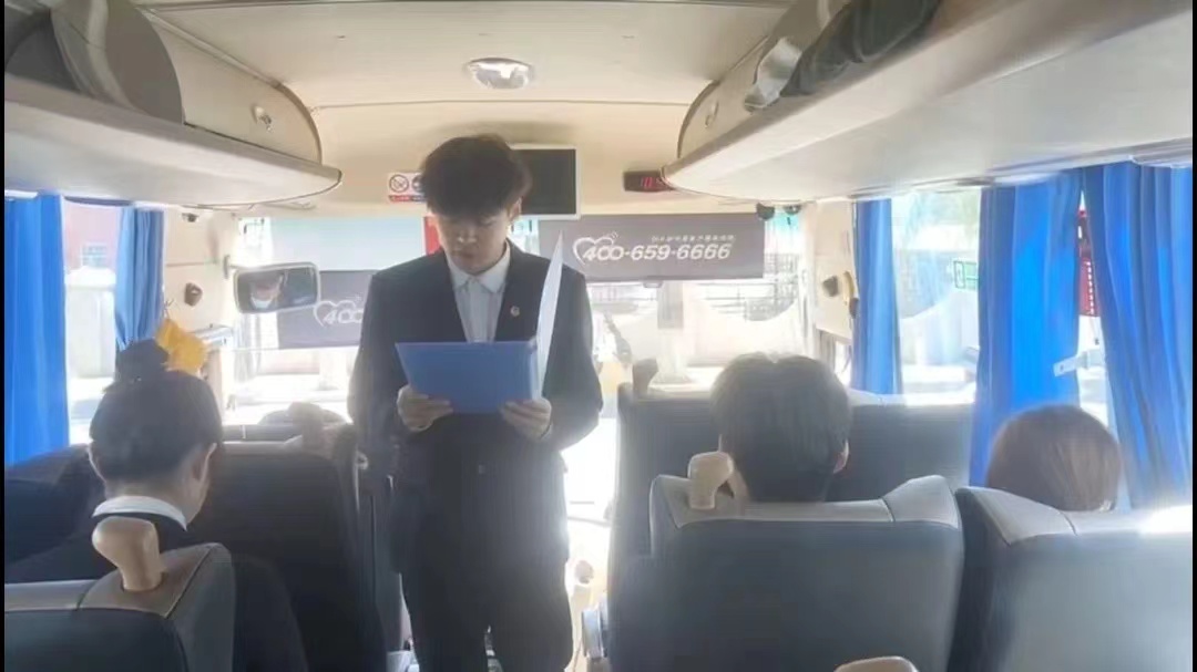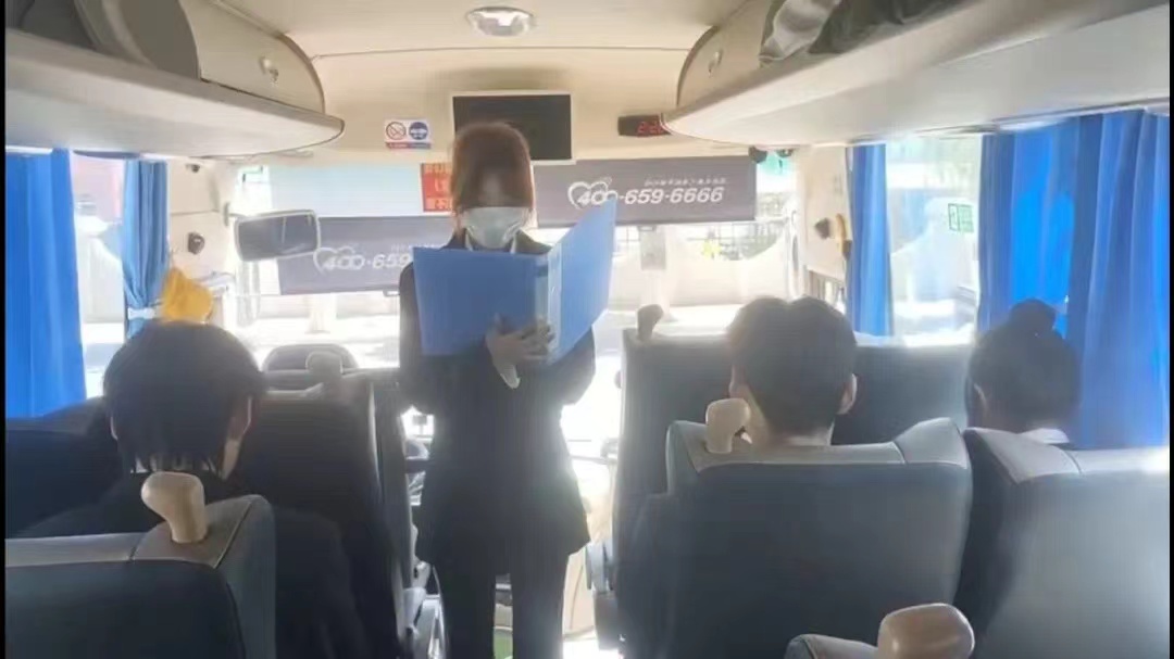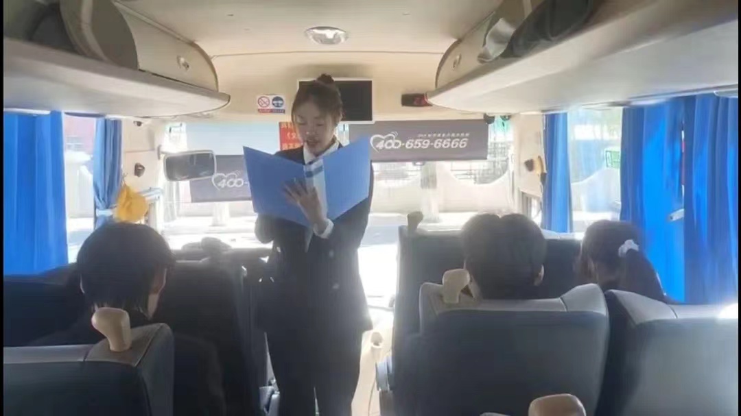 “青马”学员周玉博、方越、赵婧宜和王路宁在前往纪念馆的路途中带来宣讲,讲述东北抗日联军的源起与辉煌战绩,并着重介绍该联军卓越领导者杨靖宇的传奇人生。