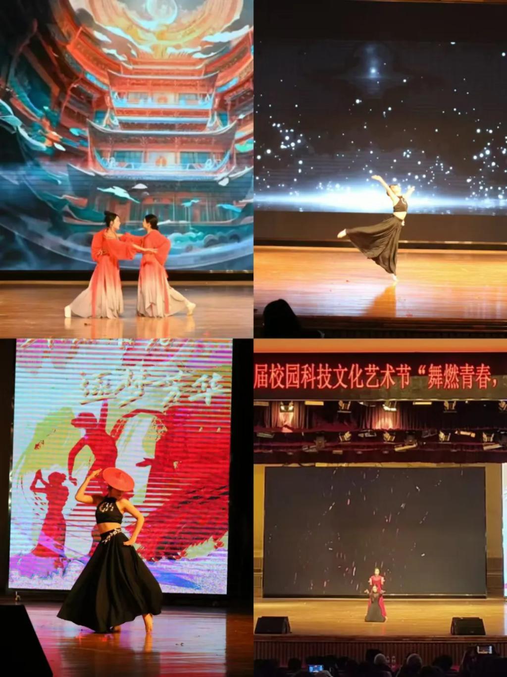 单双人舞阶段共有管理学院双人舞《pink mamba》、文法学院双人舞《起舞》、商务英语学院双人舞《街舞串烧》、管理学院独舞《椿》、计算机与数学学院独舞《竹枝词》、会计学院双人舞《心界》、金融与贸易院独舞《清平调》、投资与保险学院独舞《花腰傣》等8支舞蹈。