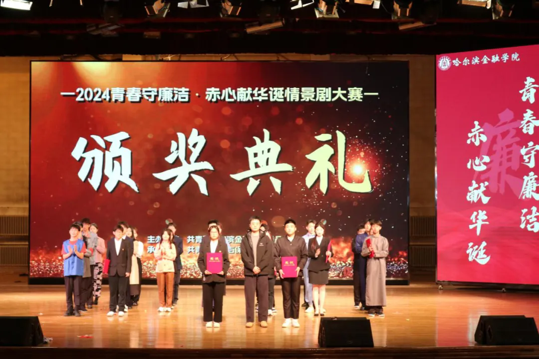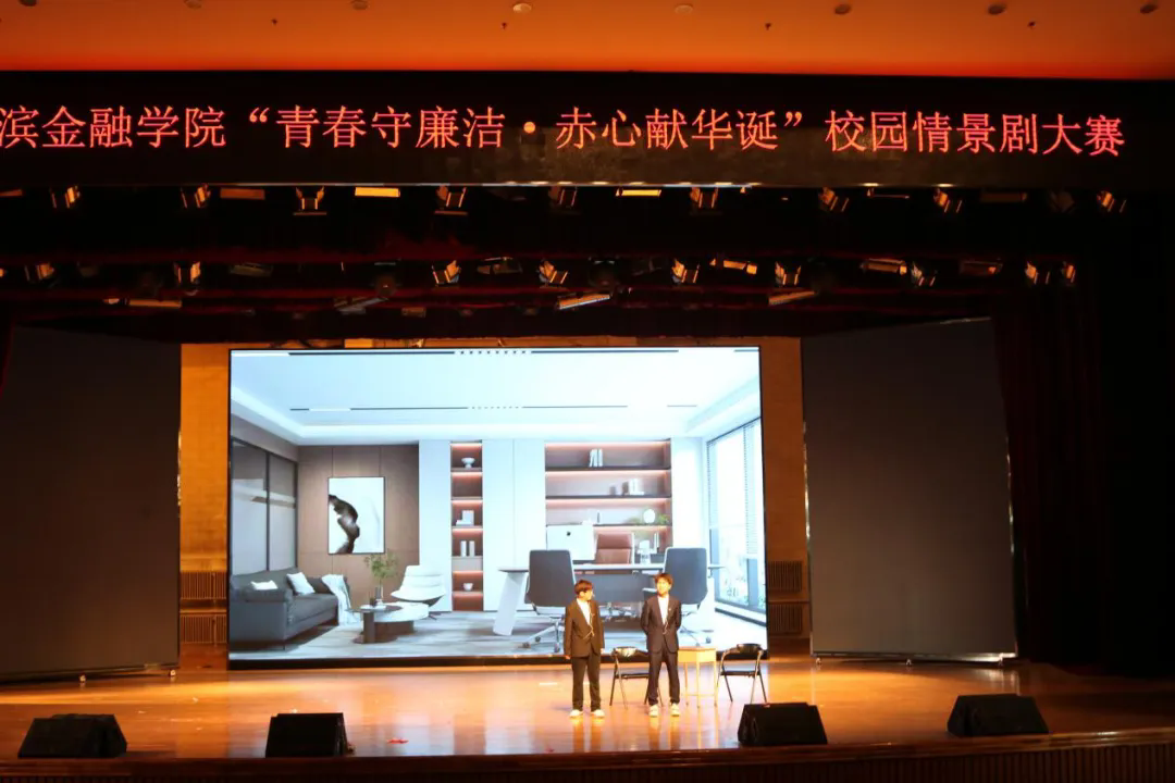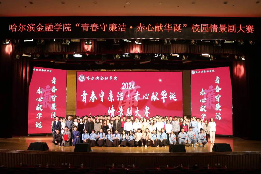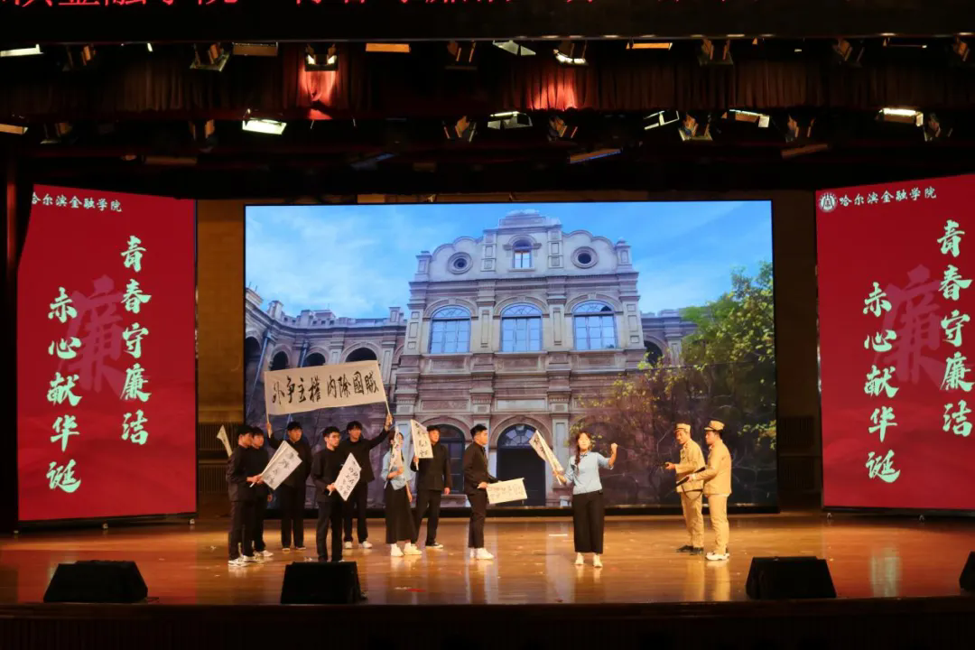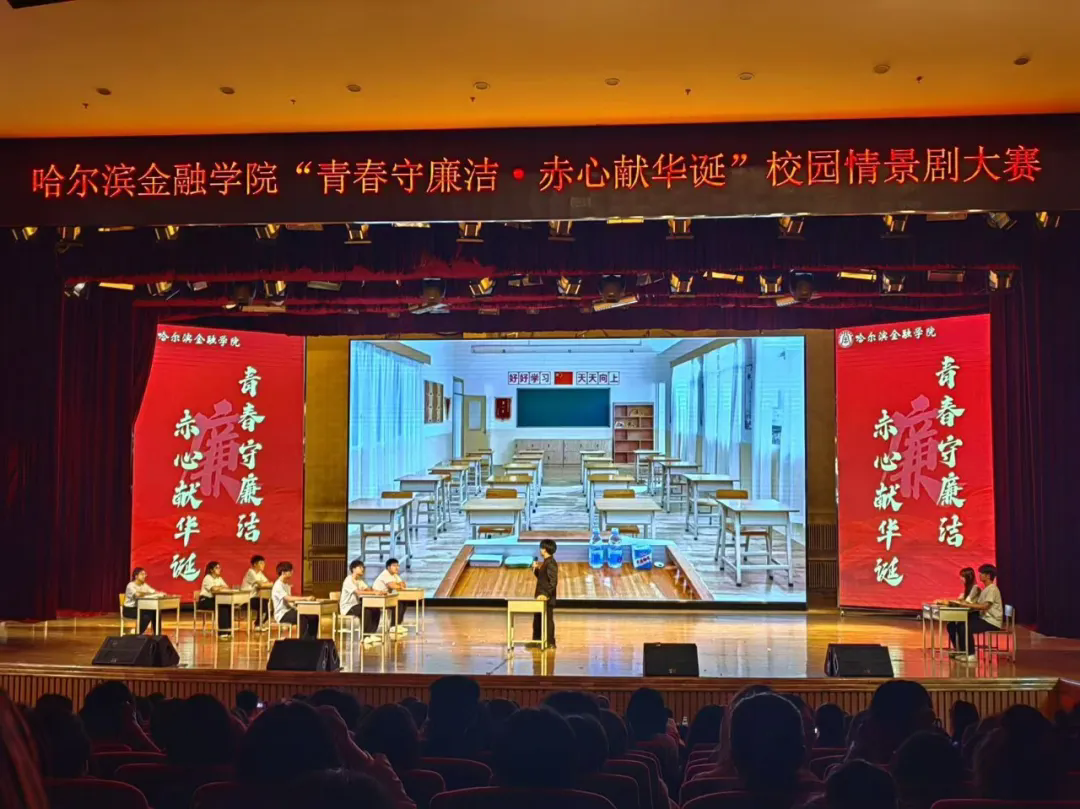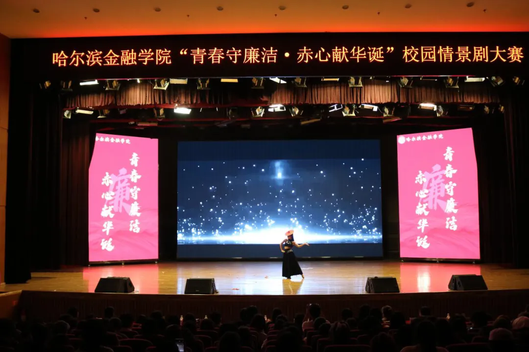 为全面展示我校大学生的青春活力与艺术才华,营造健康向上的校园文化氛围,全面深入贯彻落实党的教育方针,牢筑抵制腐败思想,以赤诚之心迎接祖国的75周年华诞,按照《哈尔滨金融学院第十四届校园科技文化艺术节活动方案》的具体安排,2024年11月6日晚,由校团委主办、投资与保险学院团委承办的第十四届校园科技文化艺术节“青春守廉洁·赤心献华诞”校园情景剧大赛在金苑礼堂拉开帷幕。我校宣传统战部赵晓鹏、纪委办公室姜思湛、团委姜岩担任本次大赛评委,校团委书记门晓宇、团委副书记岳冰以及各二级学院团委书记及辅导员代表列席。