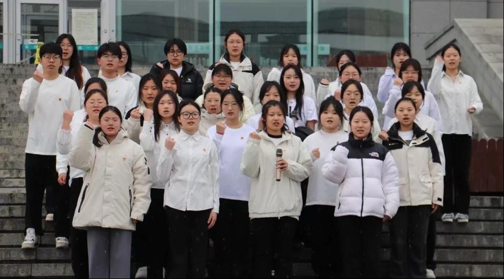 实验楼前,“青马”学员以满腔热血唱响红歌,象征着新时代青年在追求知识的道路上,不忘红色初心,以实际行动为实现强国强军的目标努力奋斗。