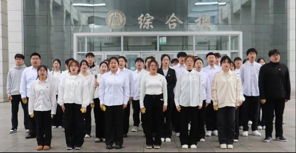 综合楼前,歌声回荡,展现出“青马”学员将红色精神融入日常学习与工作的决心。图书馆前,同学们的歌声为知识的殿堂增添了一抹红色的光辉,激励着大家以红色文化为指引,不断充实自我,为国家的发展贡献智慧。